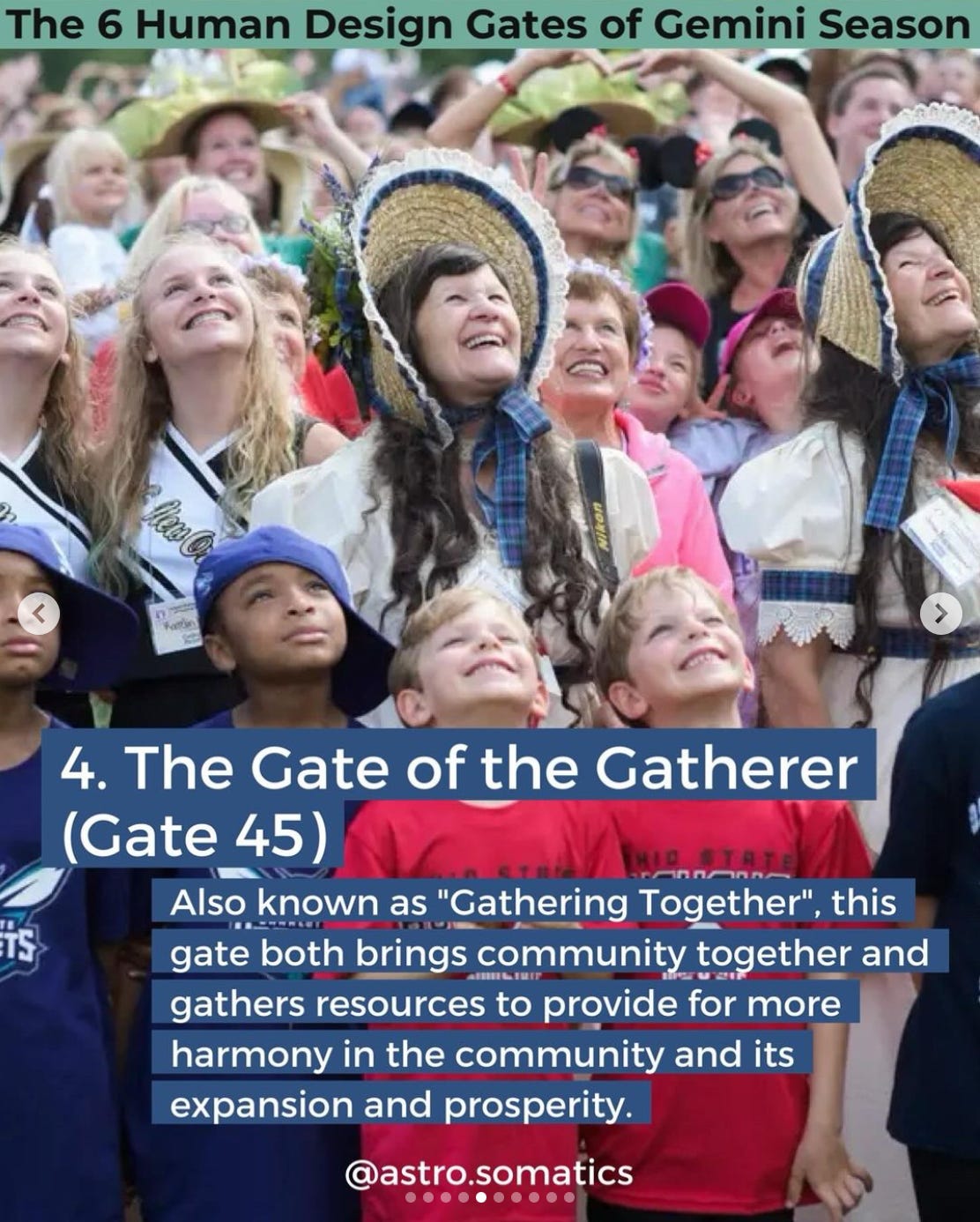 I will be chatting more about gate 45 with a special guest on next week’s episode, so be sure to tune in for that! Her birthday is in Gemini season in gate 45. She’s someone I admire greatly, and she definitely embodies the spirit of the benevolent gatherer!