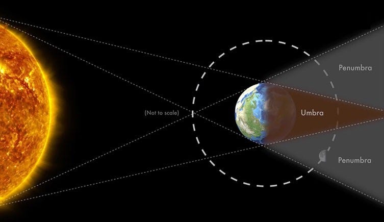 The next eclipse in this season will be a Penumbral lunar eclipse in Scorpio on May 5, 2023. Lunar Eclipses happen when the Earth is between the Sun and the Moon, and the Earth’s shadow is cast onto what would be a full moon. Previously I wrote about how the full moon is a mirror (that can help us like our own reflections) in a psychological sense, and the mirror analogy is a good one to carry forward to thinking about lunar eclipses.