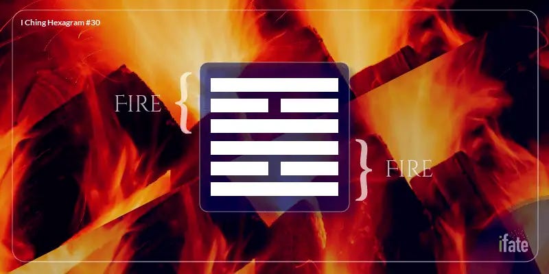30: Fire over Fire or " Clinging Fire", aka the Gate of FEELINGS or PASSION
