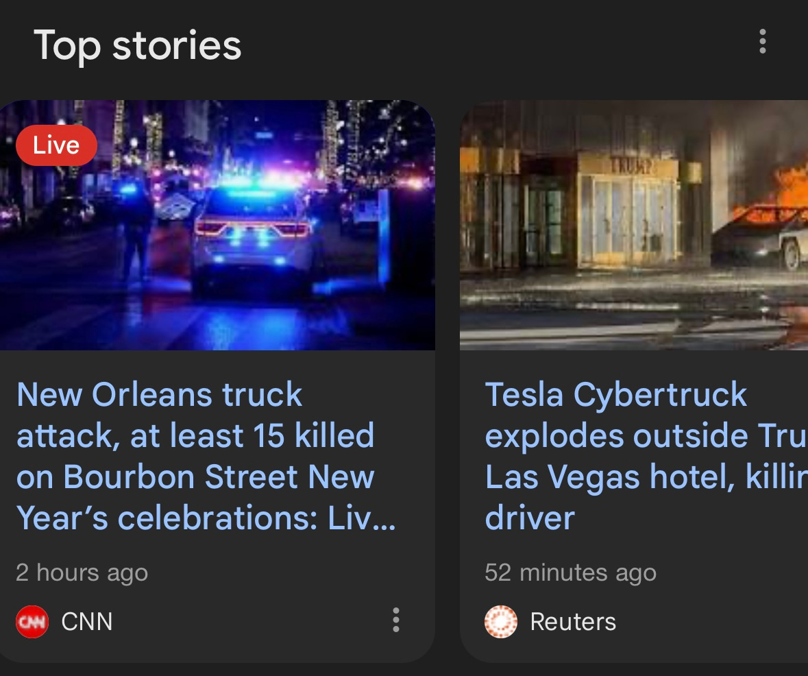 Meanwhile, planes are crashing around the world, sick people are are crashing trucks into innocent people, and a Tesla Cyber truck is blowing up in front of Trump Tower, creating an iconic symbol foreshadowing things to come.