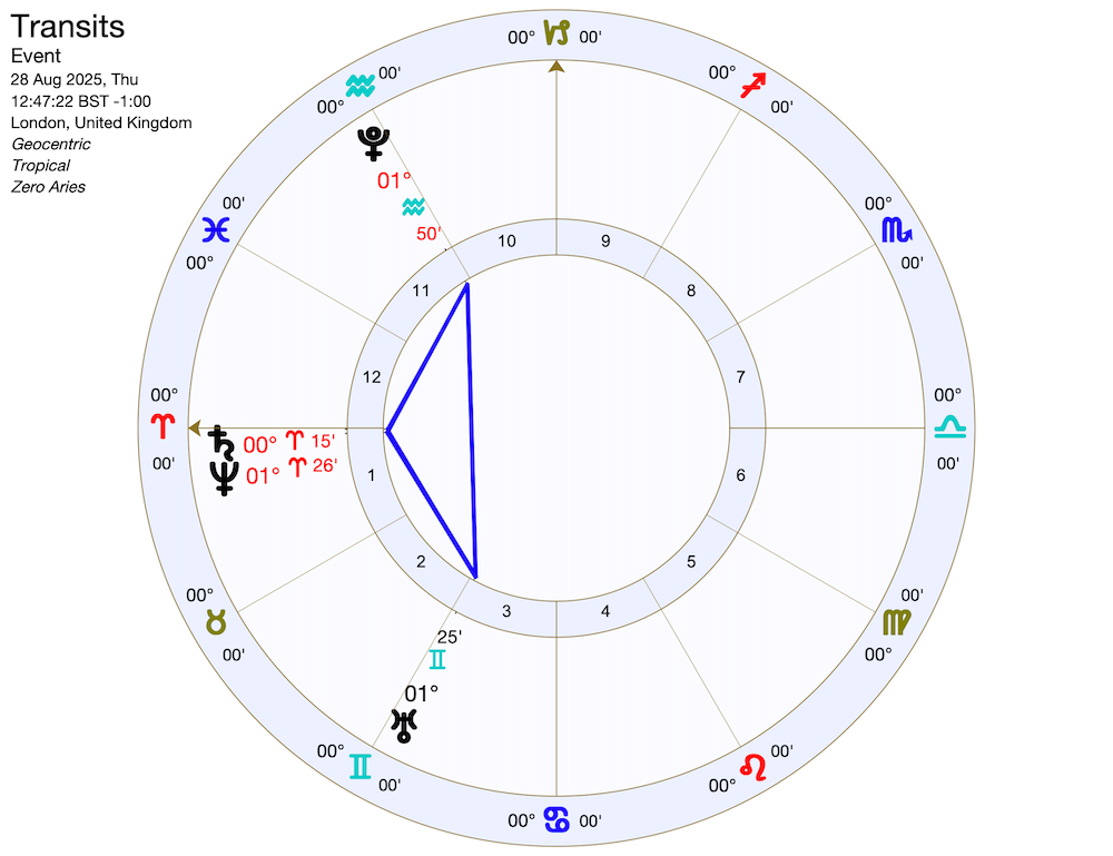 Saturn and Neptune are meeting up at the 0 point of Aries, the beginning of the entire Zodiac. (2026)