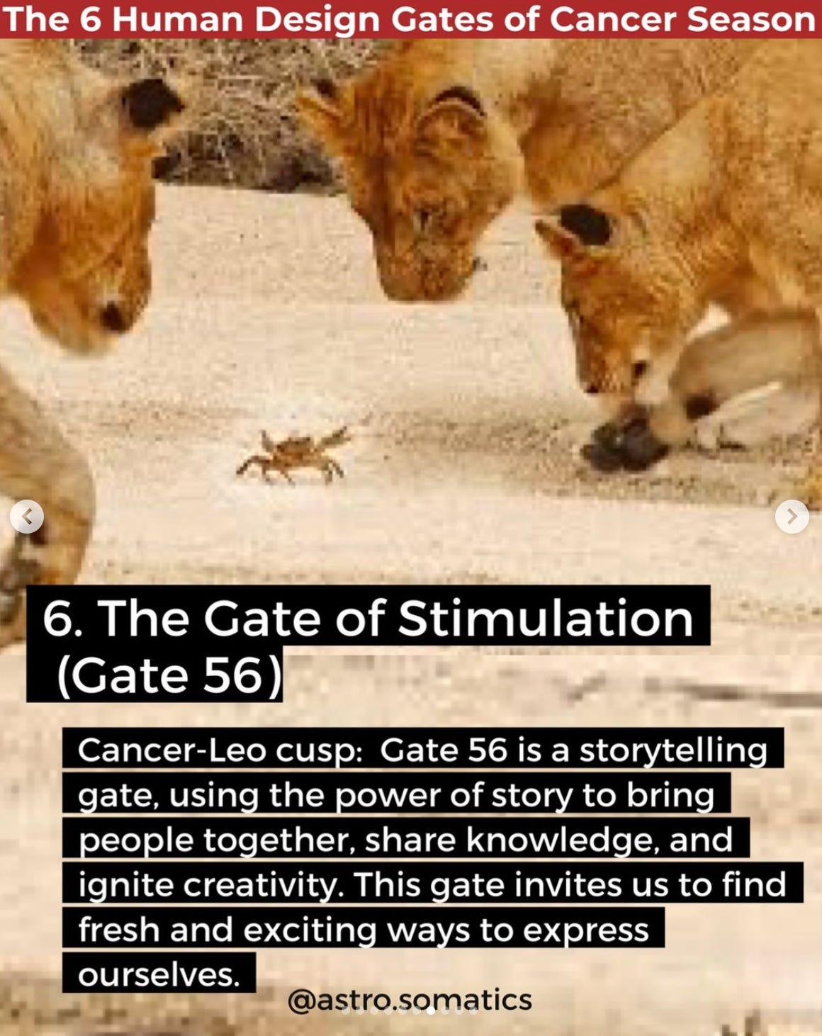 July 18-24 (Cancer-Leo cusp) = Gate 56