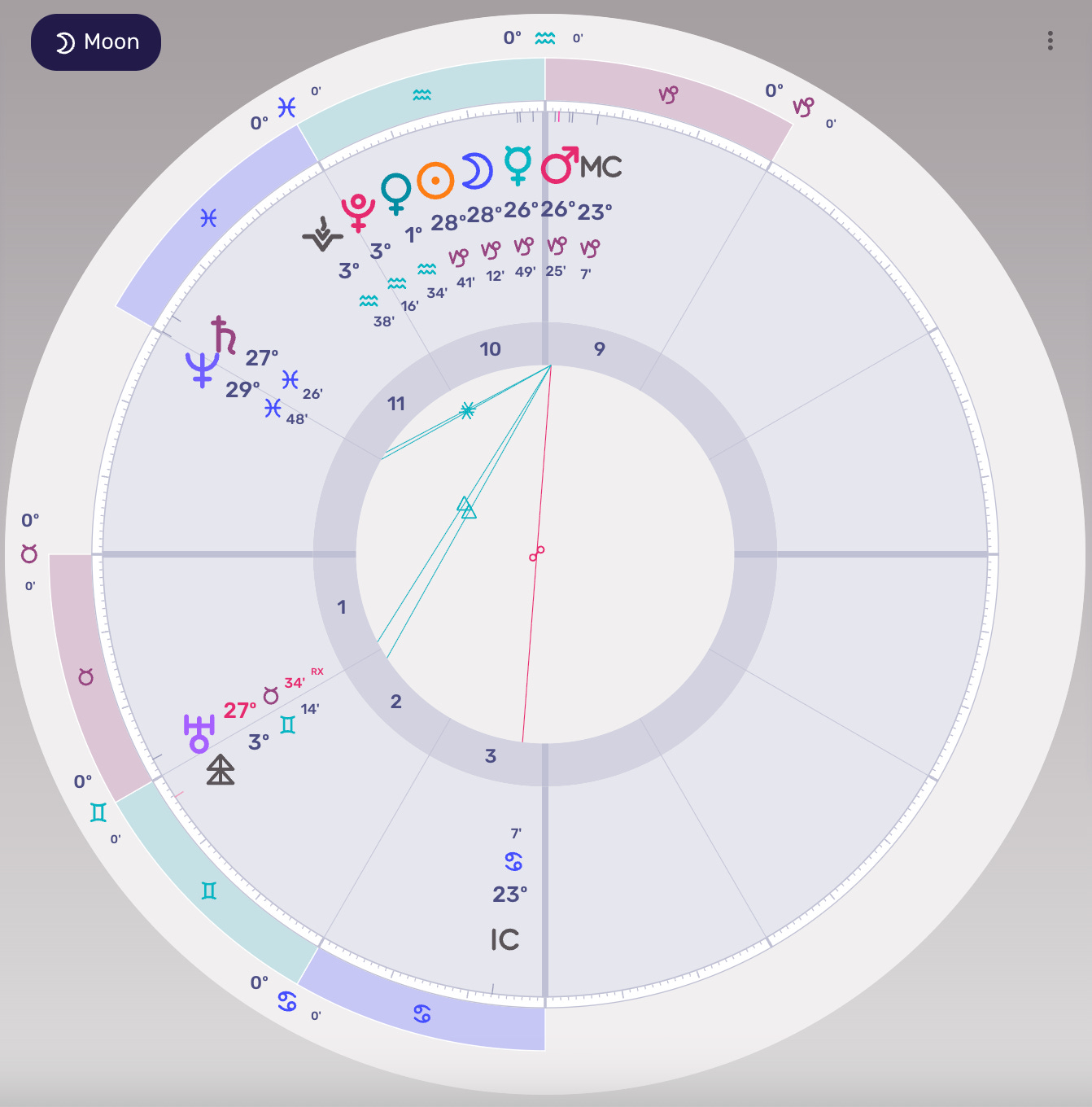 This New Moon is tightly conjunct a cluster of inner planets, which turns the Gate 60 theme from an interesting concept into an immediate lived experience. A New Moon already sets the tone for a cycle. Add Mercury, Mars, and Venus close by in thesame gate, and the way we communicate, our agency, and our value systems are all standing in the same room, looking at the same problem, and getting ready to make a decision that sticks.