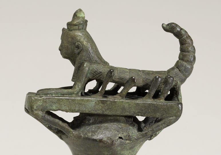 The eclipse is happening near the astronomical point on the ecliptic called the South Node of the moon. The south node is also called the “tail of the dragon”, and it is linked with themes of digestion, excretion, and release of the past. By contrast, the North Node (where Taurus eclipses have been happening for the past year and a half) is known as the “head of the dragon”, and it represents hunger, striving, and movement toward the future.