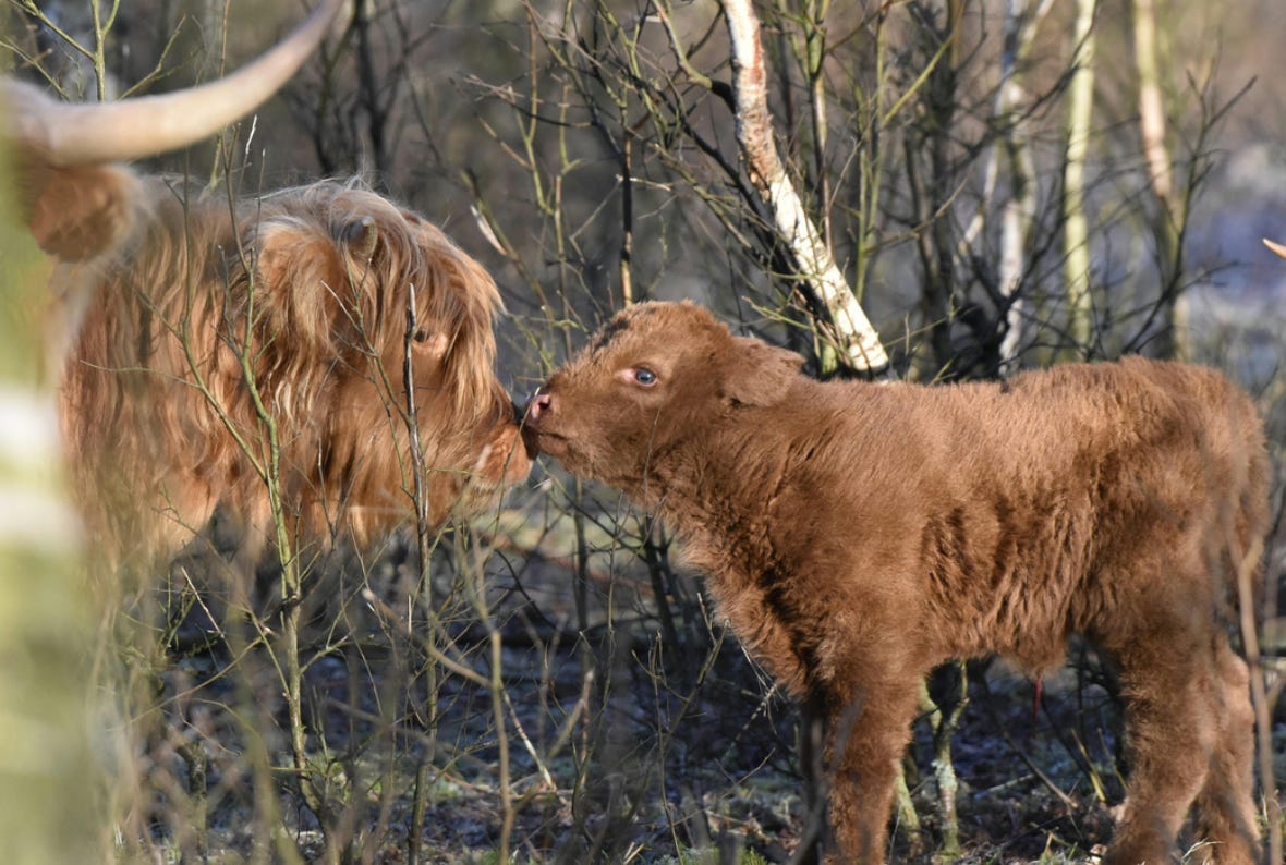 Cows and bulls show herd mentality, which means they tend to move and act as a group. This behavior is motivated by the need to stay together for safety from predators and to maintain social bonds. Cows will often lie near a stressed herdmate, and they also engage in allogrooming, which is a behavior that reinforces social relationships and appears to be mutualistic, meaning cows tend to groom those that have previously groomed them.