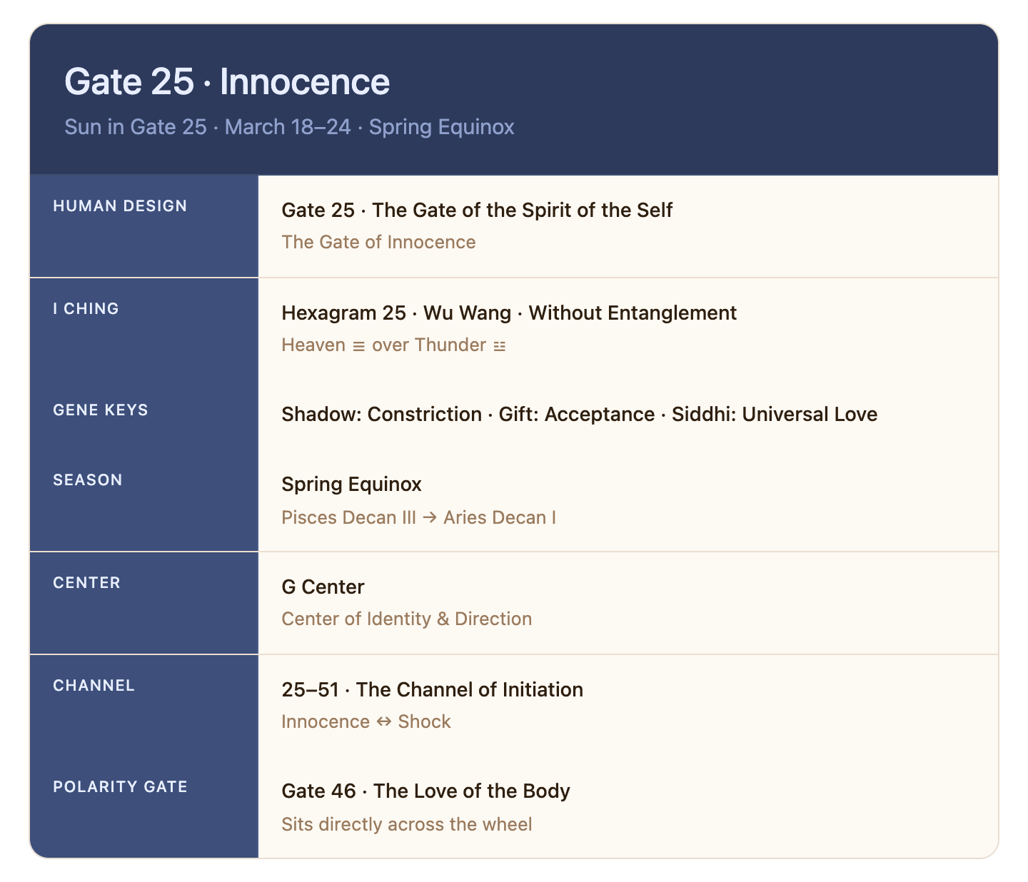 Sun in Aries, Gate 25 · March 18–24