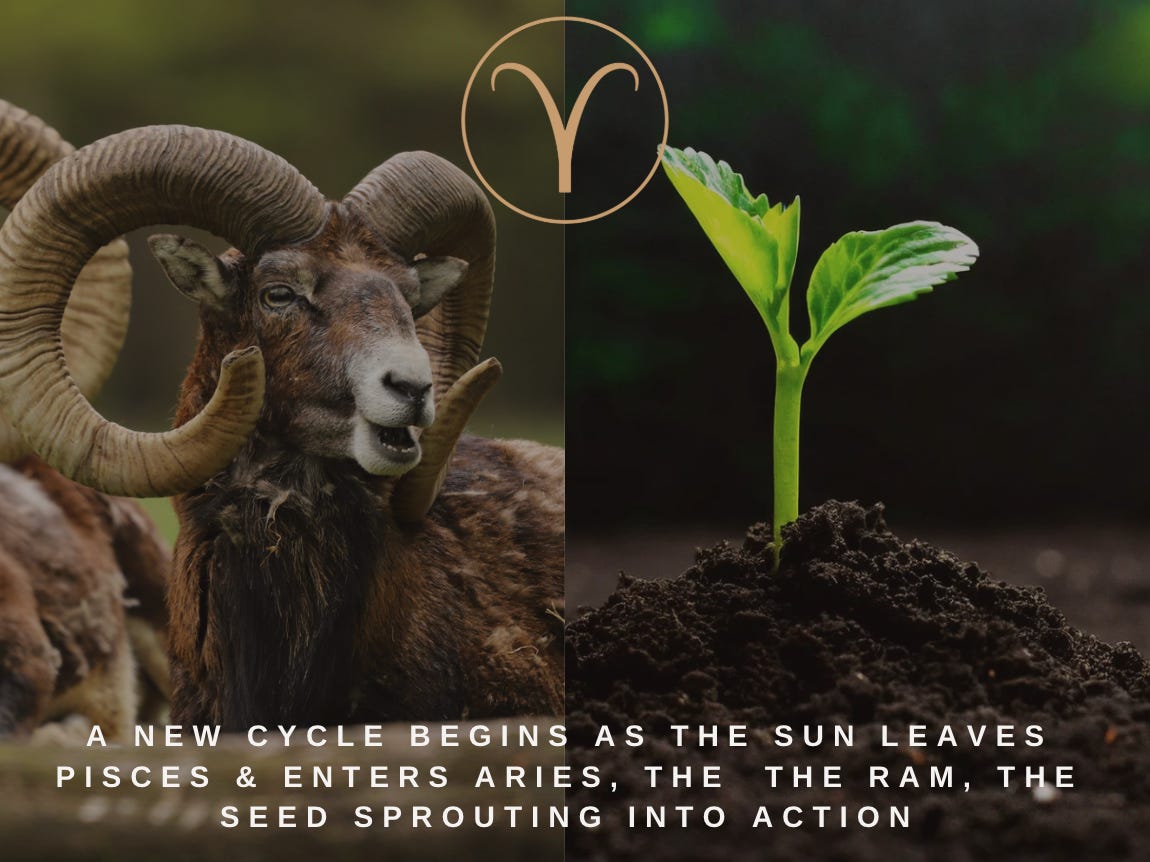 This is the Astrological New Year, symbolized by the horns of the ram, the green sprout that has made it up through the hard ground. So even though the contractions began on the Human Design New Year back in February, we’re beggining this walk with the energy of the sprout.