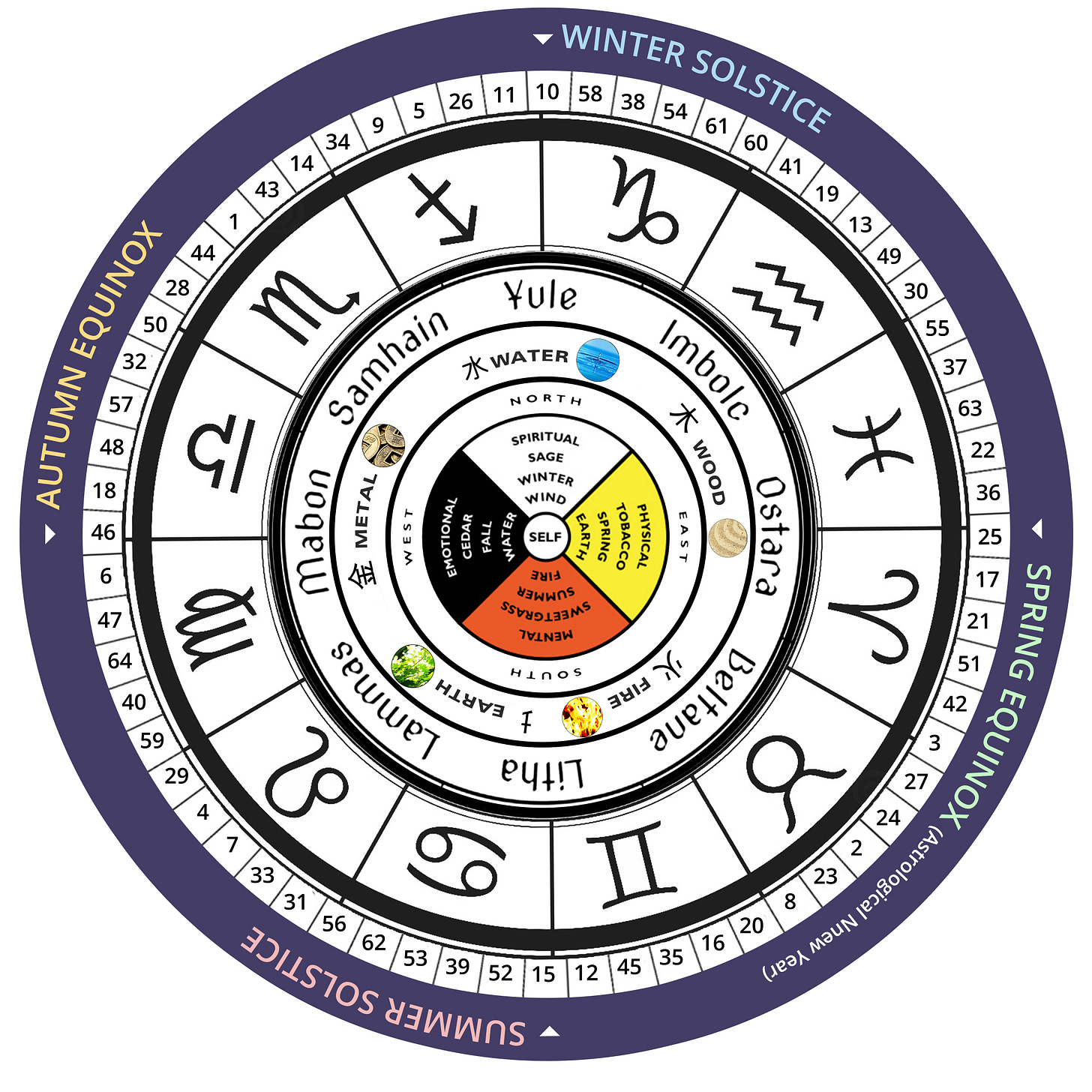 Yee! So that’s the slicing up of the pie from all of the different philosophies, all of the cycles of time. 4 indigenous seasons, 5 taoist elements, 8 european pagan sabbaths,12 babylonian zodiac signs, 13 moons, and 64 hexagrams or gates.