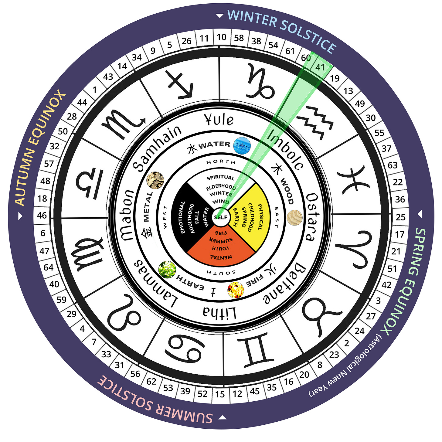 Similarly, in Human Design, Gate 41 symbolizes the energetic starting point for imagination, manifesting new possibilities and beginning the experiential process. Gate 41 is known as "Decrease" in the I Ching, representing imagination, fantasy, and the initiation of new experiences. The Rave New Year signifies the start of creative potential, where the seed of imagination begins to take form in the collective. It emphasizes moving from ideas to experience. Gate 41 is in the Root Center, which governs pressure and drive. The energy here pushes us to begin something new and to pursue desires or dreams that are uniquely personal yet linked to collective evolution.