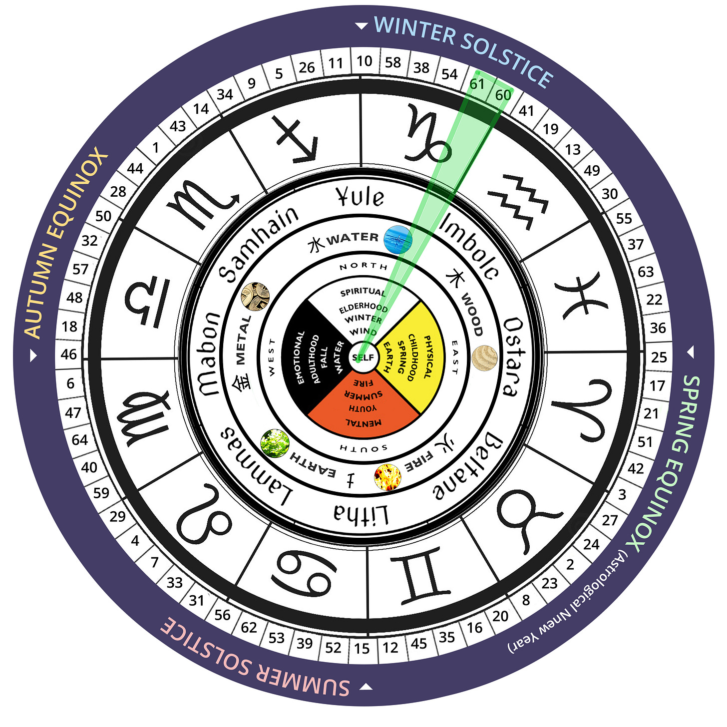This week in the wheel of the year: We finish up Capricorn Season and enter Aquarius, the sun transits through Gates 61 and 60 in the Human Design/I’Ching Wheel of the Year.