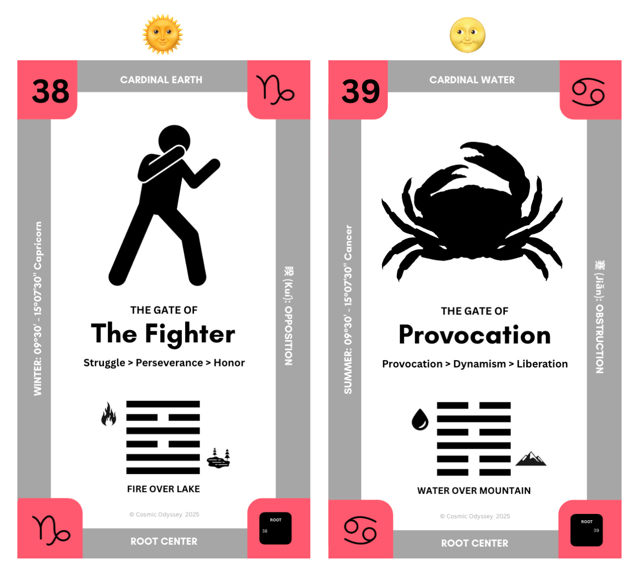 In the I’Ching, this gate is called “obstruction”, and references a time when progress slows so that we can feel what has been avoided. Obstruction is not a mistake. It is a sacred pause that redirects energy toward inner liberation. When we stop resisting the discomfort, Gate 39 opens a path toward freedom that is rooted in authenticity rather than escape.