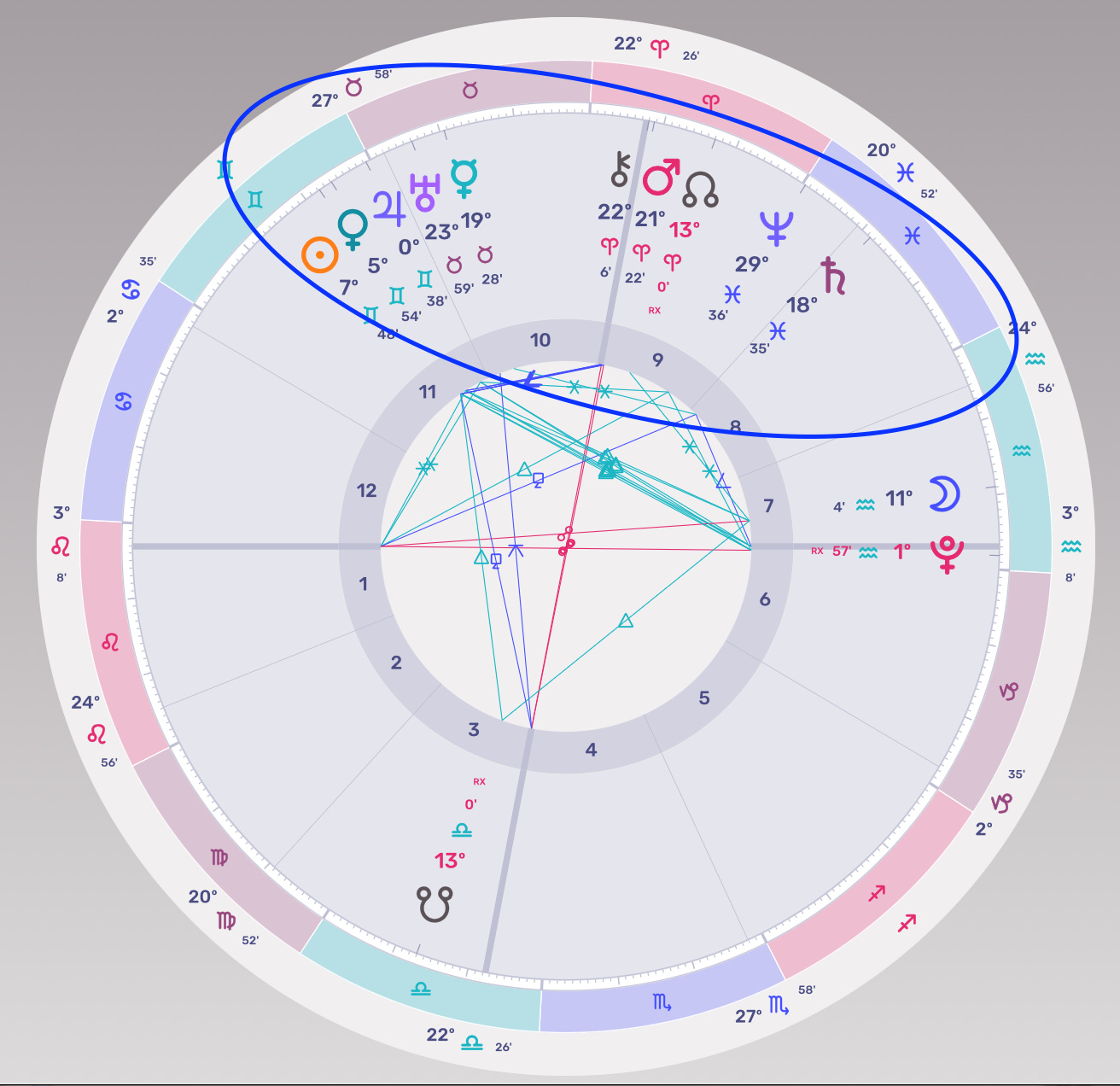 Full moons can often leave a bit of a hangover. and last Thursday’s full moon was a pretty powerful one, as it was opposite the conjunction of Venus and Jupiter. Now the sun, Jupiter, and Venus have all moved into the sign of the twins, really ushering us into big Gemini energy. Uranus and Mercury are still Taurus, and with Mars in Aries, and Saturn and Neptune in Pisces, there’s a lot of planetary weight on one single side of the sky right now. It’s a bit lopsided energy, a concentration in a single side of your chart. So if life is feeling heavy or imbalanced right now, that could be part of why.