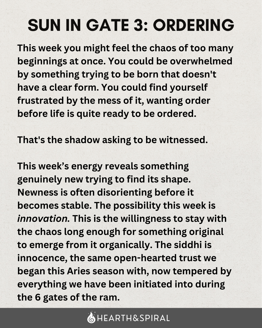 Thanks for your patience with this one- I know you were waiting on the edge of your seats wondering “When is the Gate of Growth article going to drop?!” and it never did… and here we are in Gate 3 territory, rung in by Friday’s new moon in Aries in this gate of chaos > innovation.