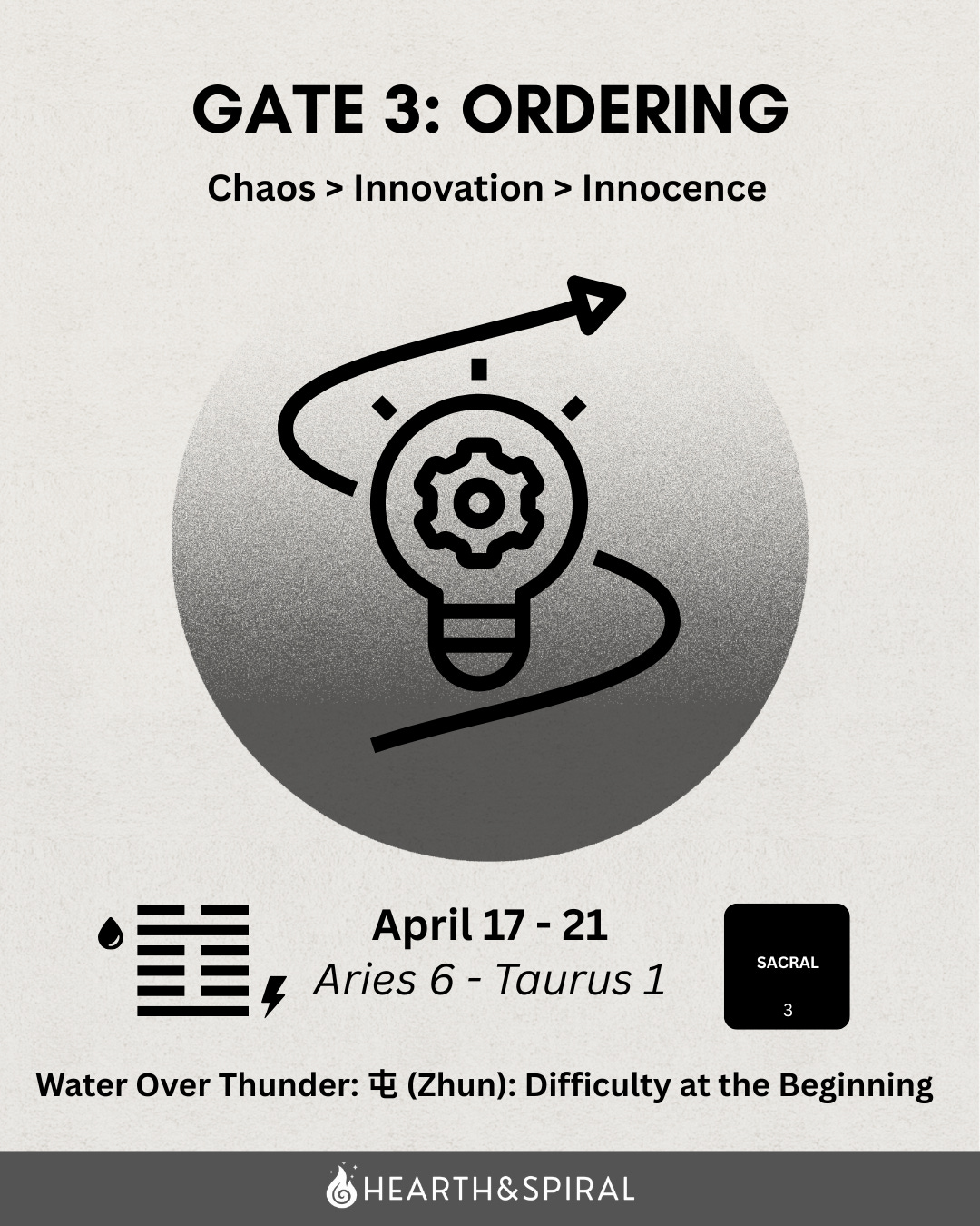 Sun in Aries, Gate 3 · April 17-21