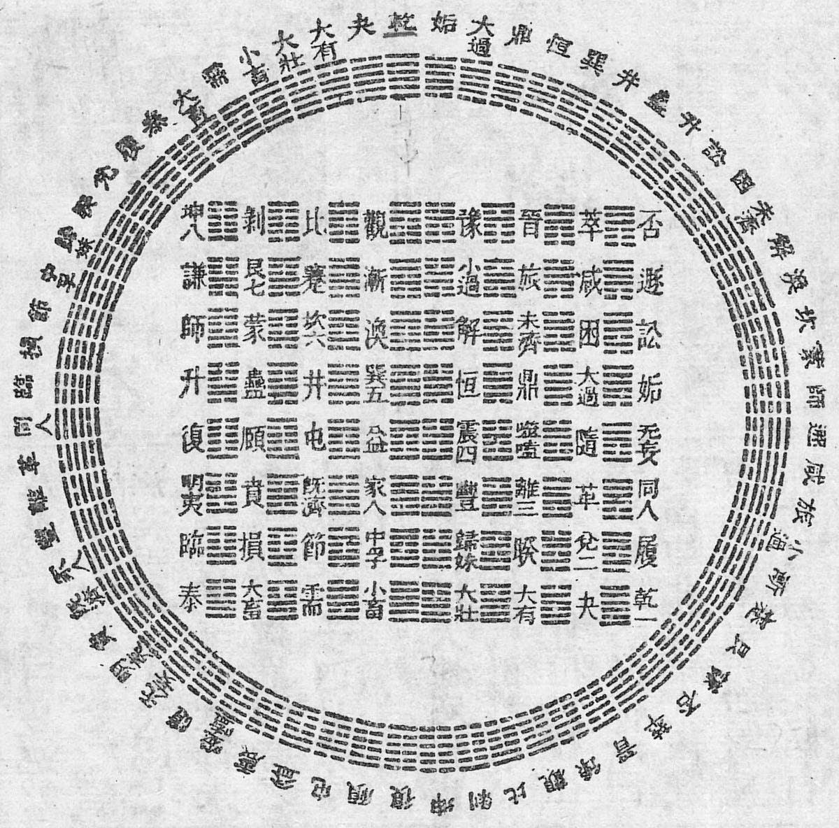 The sequence that Human Design uses on the mandala -the Fuxi sequence, also called the Earlier Heaven sequence - is a mathematically precise ordering of the 64 hexagrams that was actually formalized not by Fuxi himself but by an 11th century Song dynasty philosopher named Shao Yong around 1060 CE. Shao Yong arranged the hexagrams starting from all broken lines and moving systematically toward all solid lines, with each hexagram differing from the next by the minimum possible change.