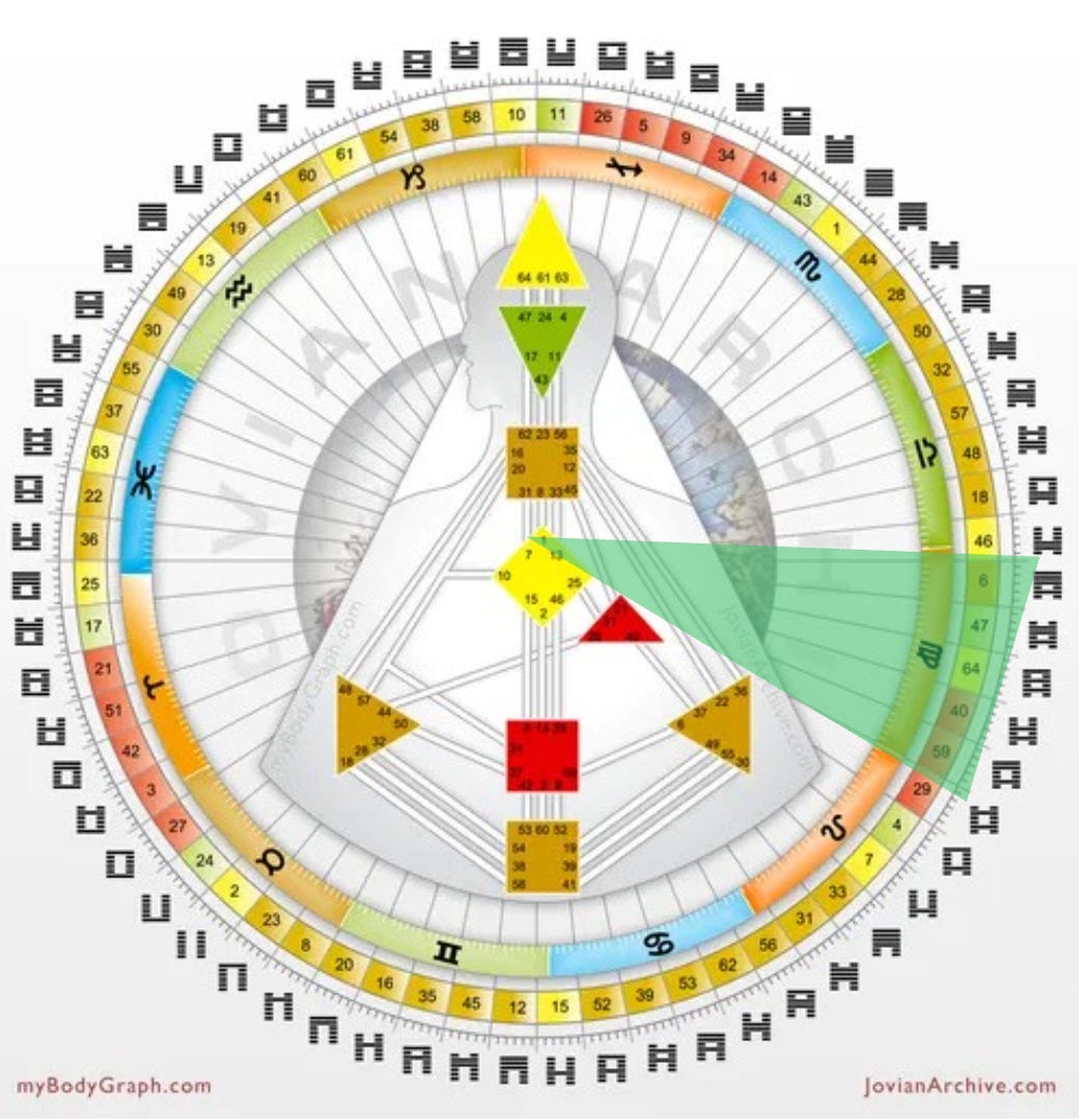 Wow! I very much appreciate these, even the incorrect gate 6 section which is filled with gate 4 information lol (helped me understand my personality south node). I would love to see your gate 6 information as it is my personality earth gate. I have Virgo Rising, oh, and design Moon in gate 40 as well! 2nd edit to add Pluto twice on gate 46, forming channel with design south node in gate 29). I forget how much Virgo I have!