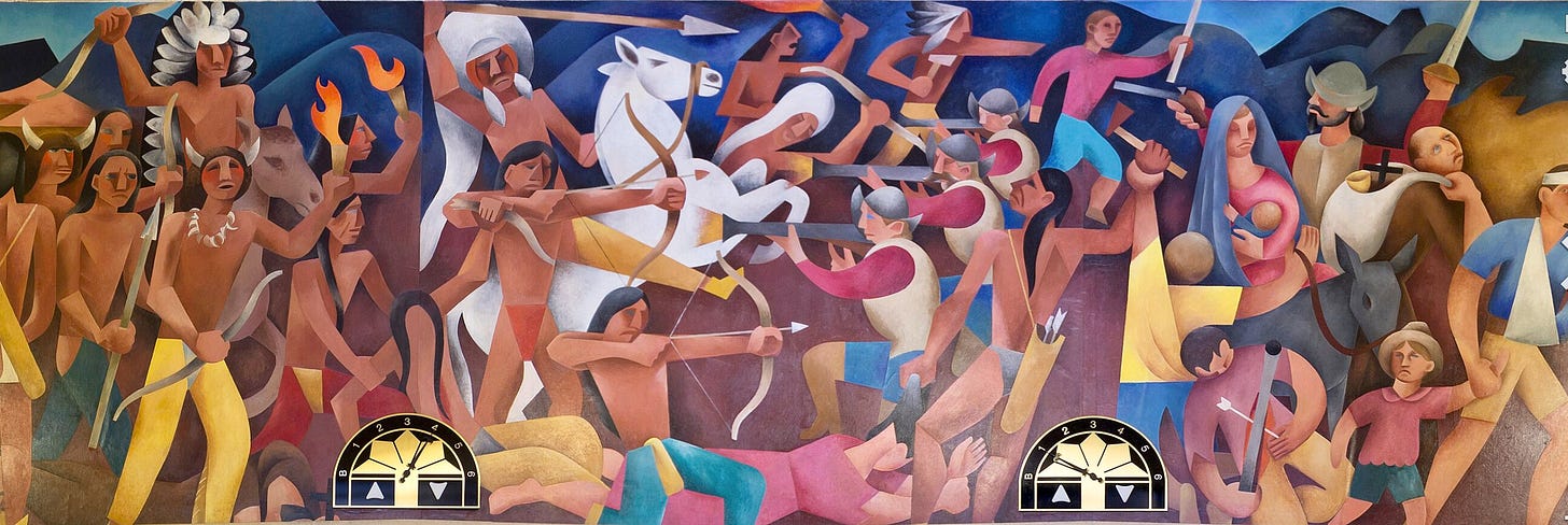Just this week in Santa Fe, there was a huge city council meeting to vote on a proposition to remove the Fiesta Court from touring schools in Santa Fe. Santa Fe Fiestas is a long-running celebration that happens here every September. Fiestas celebrates the re-conquest of the city of Santa Fe by Don Diego de Vargas and his Spanish conquistadors after the Pueblo Revolt, an uprising of indigenous Pueblo people against the Spanish colonizers in 1680.