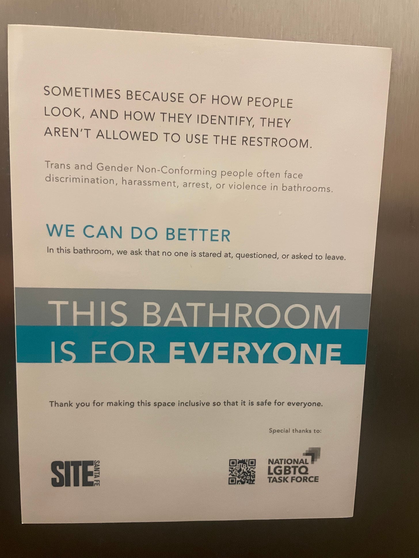 I recently visited Site Santa Fe, a fabulous museum of contemporary art, and saw a few great exhibits. The thing that stood out to me the most, though, was their bathroom door signage, which simply read: